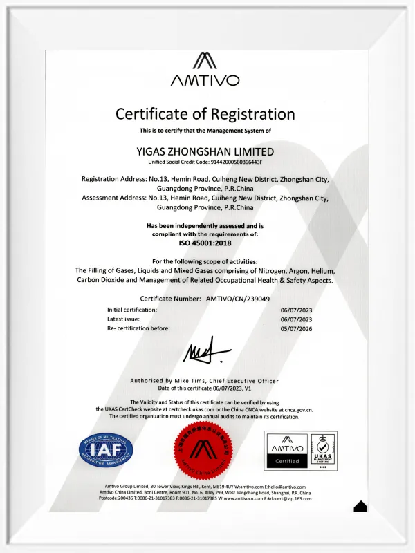 YIGAS is a comprehensive gas supplier in China, established in 1993 with over 30 years of experience in the industrial gas industry. Headquartered in Guangzhou, YIGAS operates 10 large-scale production bases. Our gas products encompass industrial gases and specialty gases, serving domestic and international industries including electronics and semiconductors, healthcare, laboratories, high-end equipment manufacturing, petrochemicals, building materials, and food processing. The company holds ISO 9001 Quality Management System certification and OHSMS 18000 Occupational Health and Safety Management System certification. In 2021, annual sales exceeded RMB 500 million.